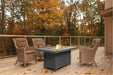 3/8" Natural Gas hose sold separately A stylish linear design sets the Napoleon Hamptons Rectangular Patioflame® Table apart from the rest. The stylish linear design with a contemporary look to suit any décor. Gather round and relax in front of the beautiful dancing flames. Safe and fuel efficient, the Hamptons Rectangular Patioflame® Table features a thermocouple valve that cuts the gas when flame is interrupted, meaning that if a gust blows the flame out, or you forget to shut the gas when you're done, no gas will be wasted. The beautifully constructed, durable, aluminum surround conveniently hides a gas tank (propane models). Never worry about the weather, drainage holes in the burner pan allow the rain to drain away, and the optional windscreen will protect the flames from the wind. Set your drinks down, converse in comfort and enjoy your outdoor living space. Easily convert your Hamptons Rectangular Patioflame® Table into a fully functioning table with the burner lid (included).