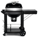 Charcoal enthusiasts can experience full-sized grilling with the compact and mobile Napoleon PRO Charcoal Kettle Grill with Cart. The folding, black, powder-coated cart features a folding side shelf that provides generous prep space. Cast iron grids can be set at three elevations, ideal for the way you want to BBQ. The grids are hinged for easy access, making it simple to add charcoal, refill water pans, and introduce smoking wood. When charcoal grilling, heat control through airflow is essential, our Smoke Stack Chimney protects your barbecue from gusts and rain. The Vortex heat management system improves convection within the grill for better searing and smoking as well as improved fuel efficiency. The stainless steel extension ring is rotisserie ready, with doors to cover the spit rod ports. Integrated doors for temperature probes ensure that your cook will go exactly to plan. Keep everything you need close at hand with modular storage, tool hooks, and integrated rotisserie holder.