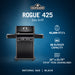 Napoleon’s Rogue® 425 Gas Grill in black, is a premium quality gas grill with an affordable price. Three burners light every time with a battery-free ignition. This grill boasts precise temperature control, high heat searing over cast iron cooking grids and stainless steel sear plates for even heating and to keep your grill clean. The stylish black exterior is highly durable and easy to clean.